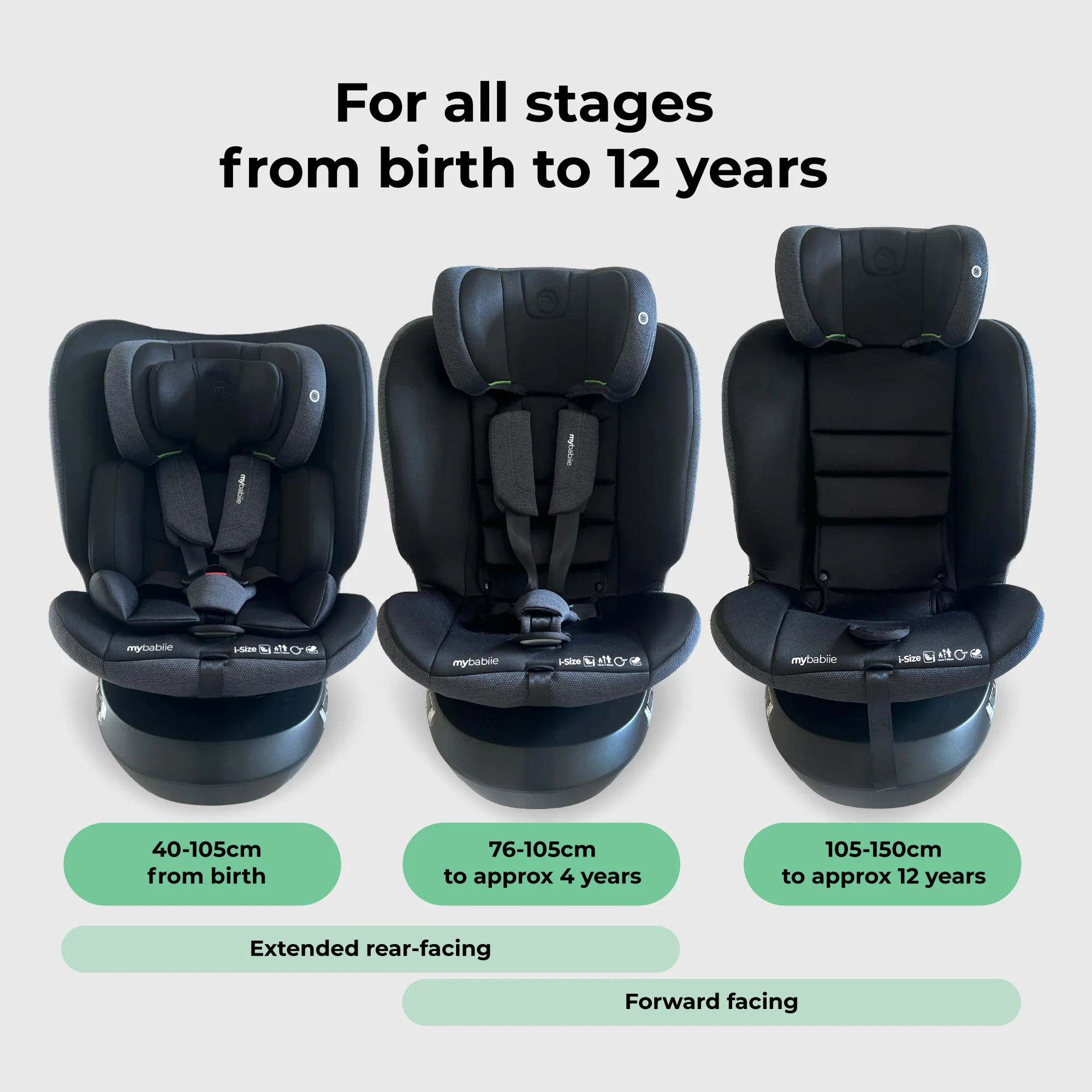 The My Babiie MBCS200 baby car seat is designed for safety, comfort, and convenience from birth to 12 years (40cm–150cm). ECE R129 certified, it offers superior protection in front, side, and rear impacts. With 360° rotation and multiple recline positions, it ensures easy access and a comfortable ride in both rear and forward-facing modes. The ISOFIX and Top Tether system provides a secure, stable installation, while the five-point harness and non-slip straps enhance safety. Soft memory foam padding and a breathable, washable cover offer lasting comfort, making this car seat a reliable companion for every stage of your child’s journey.